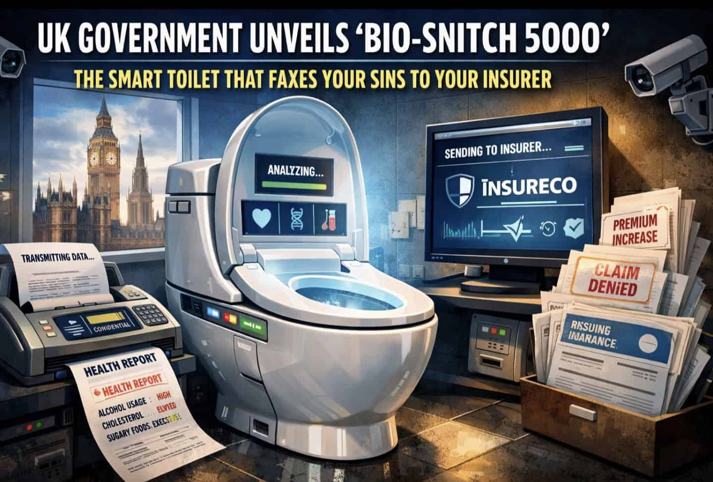 The UK government has officially unveiled the Bio-Snitch 5000, a “honesty-enforcing” smart toilet that monitors your weekend debauchery in real-time and faxes the results directly to your health insurance provider. Because nothing says national health like your toilet narcing on your 3 AM kebab.
