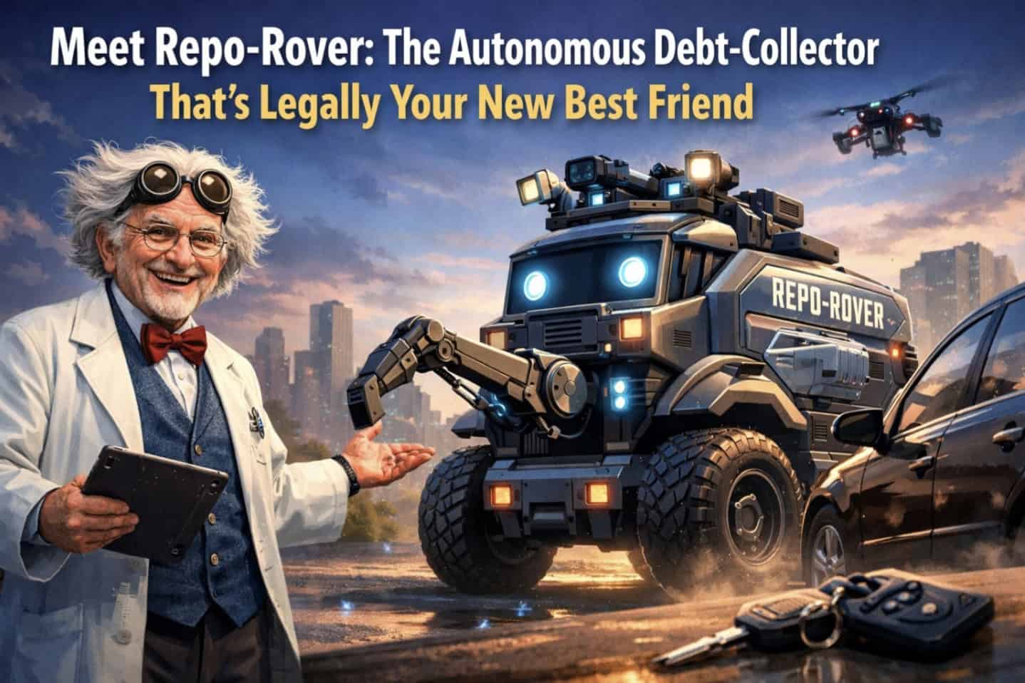 Meet Repo-Rover, the world’s first autonomous debt-collector legally classified as a “Service Animal for Capitalist Accountability.” This Flux Innovations creation won’t stop beeping until you pay that $14.99 streaming fee from 2019, following you into showers and grocery stores alike.